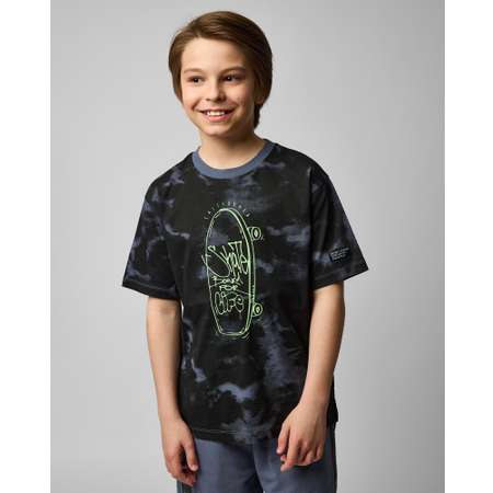 Футболка для мальчика Futurino с дизайном "тай-дай" в тёмно-сером цвете с ярким принтом.