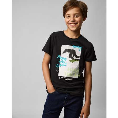 Чёрная футболка для мальчика Futurino с принтом в уличном стиле.