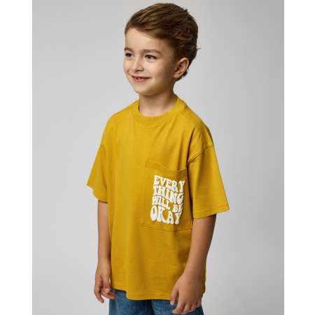 Футболка для мальчика Futurino Fashion горчичного цвета, с надписью на нагрудном кармане.
