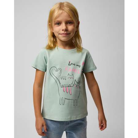 Зелёная футболка для девочки Futurino с цветным принтом.
