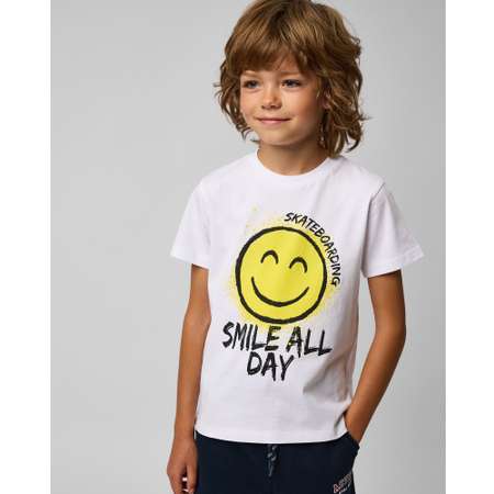 Белая футболка для мальчика Futurino с принтом "Smile all day".