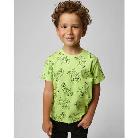 Салатовая футболка для мальчика Futurino, декорированная принтом с динозаврами.