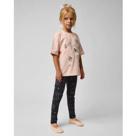 Тёмно-серые легинсы для девочки Futurino Fashion, декорированные однотонным принтом с надписями.