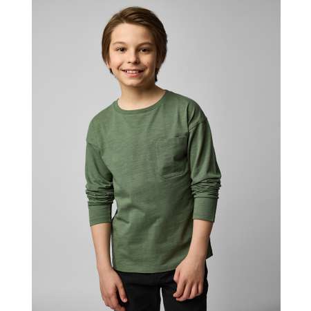 Однотонный лонгслив для мальчика Futurino цвета хаки с нагрудным карманом.