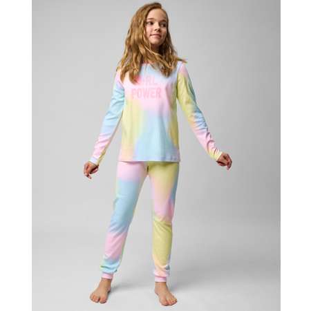 Цветная пижама для девочки Day and Night из брюк и футболки с надписью "Girl power".