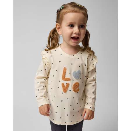 Лонгслив для девочки Baby Go с оборками. Декорирован принтом с сердечками и объёмной надписью "Love".