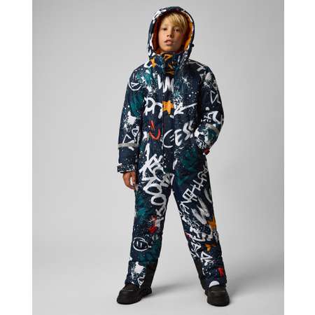 Зимний комбинезон для мальчика Futurino Cool с цветным принтом в стиле граффити. Выполнен из ветрозащитного водонепроницаемого мембранного материала (3000/3000).