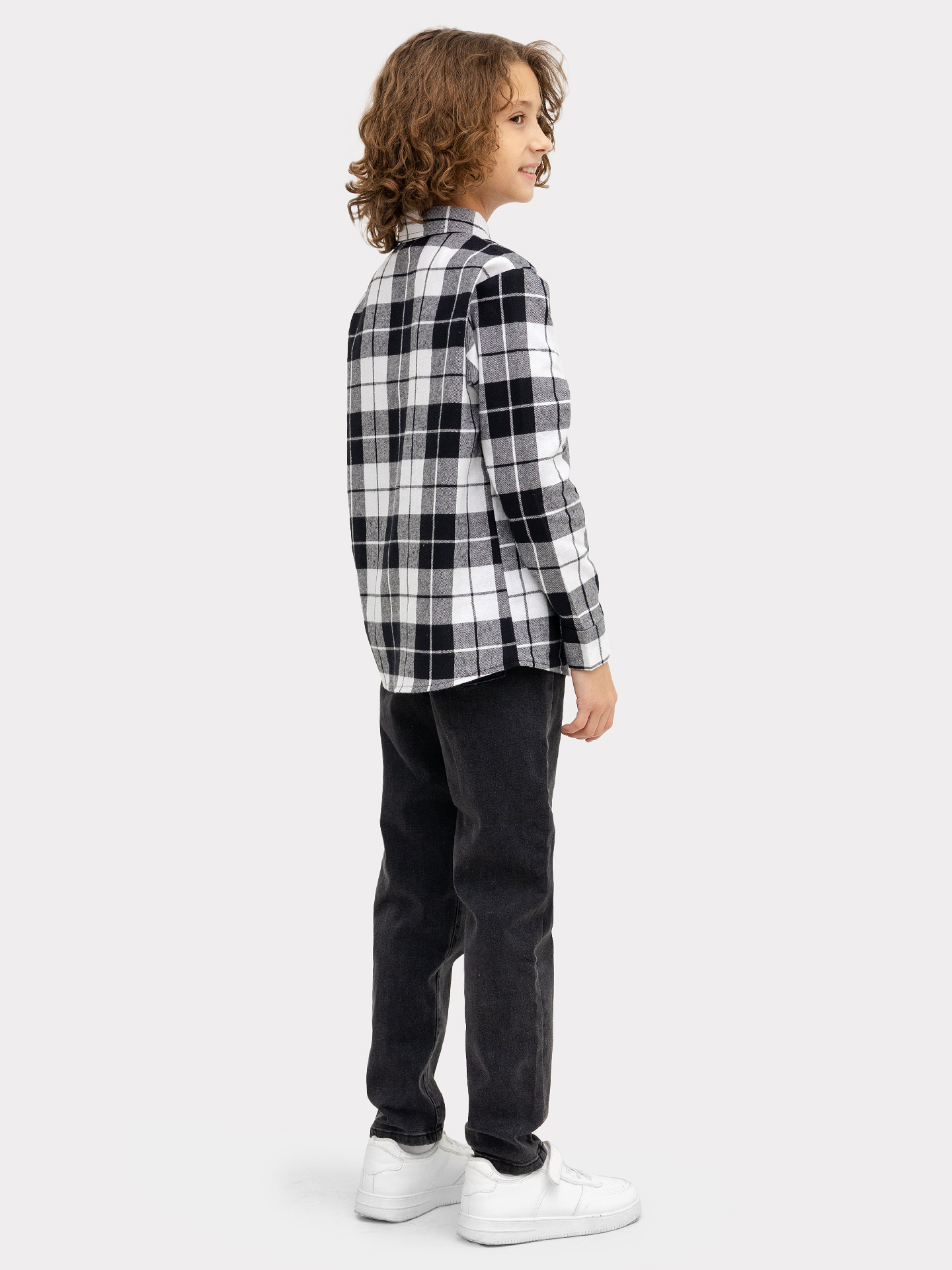 Рубашка для мальчика школьная от 5 до 13 лет от бренда Mark Formelle. Стильная рубашка с отложным воротников на пуговицах и с длинными рукавами. Прямая сорочка подростковая для мальчика в школу и на праздник. Клетчатая рубашка черно белая из 100% хлопка хорошо сочетается с брюками и джинсами. Хлопковая рубашечка на повседневную носку в садик и в школу. Подростковая сорочка для ребенка на каждый день плотная.