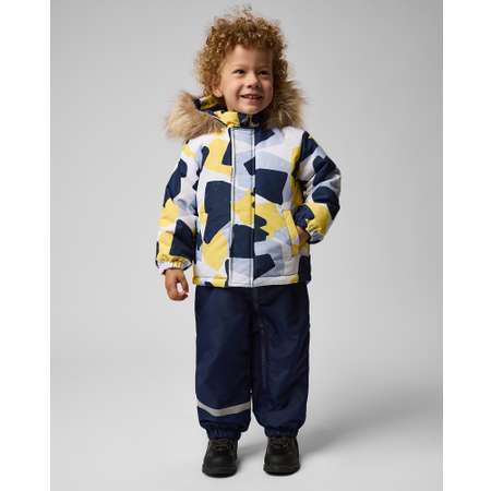 Зимний комплект для мальчика Baby Go из дух предметов: тёмно-синего полукомбинезона и цветной куртки.