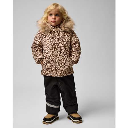 Зимний комплект для девочки Baby Go из дух предметов: чёрного полукомбинезона и леопардовой куртки.