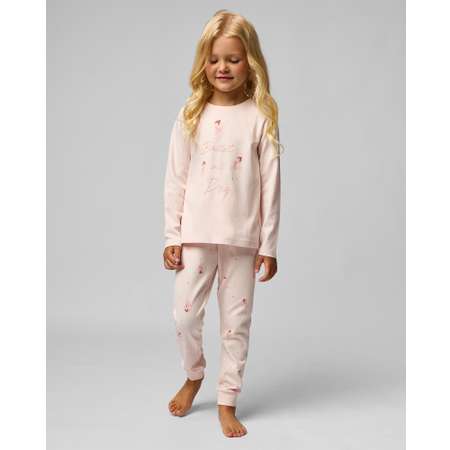 Розовый пижамный комплект для девочки Day and Night из брюк и лонгслива с цветным принтом, декорированным блёстками "Ballet all day".