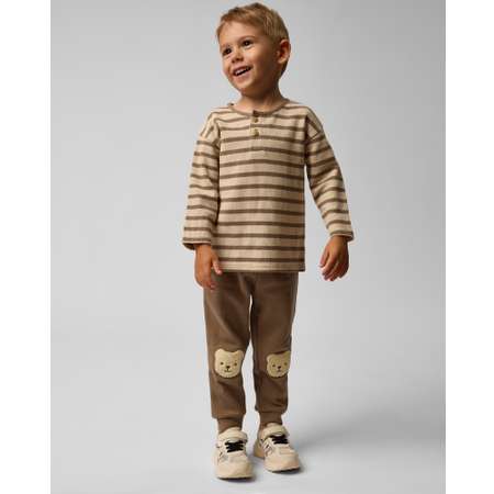 Комплект для мальчика Baby Go из двух предметов: полосатого лонгслива и коричневых брючек с объёмным декором в виде медвежат.