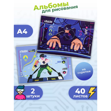 Альбомы для рисования Prof Press А4 40 листов Геймер будущего, комплект 2 штуки