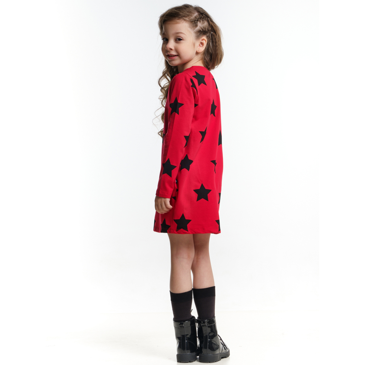 Платье со звездами для младших школьниц (красное) Выполнено из гребенной пряжи и хлопкового супрем полотна с 8% лайкры. Крой неотрезной комфортный, длинный рукав без манжет, округлая горловина.