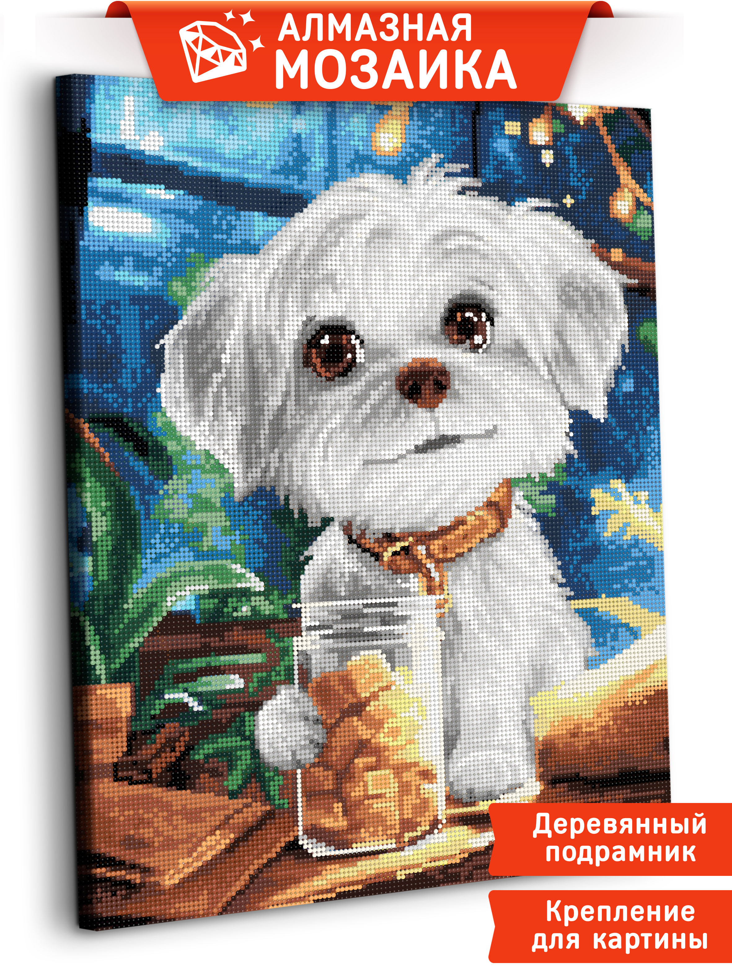 Алмазная мозаика Art sensation холст на деревянном подрамнике 40х50 см В гостях у пёсика