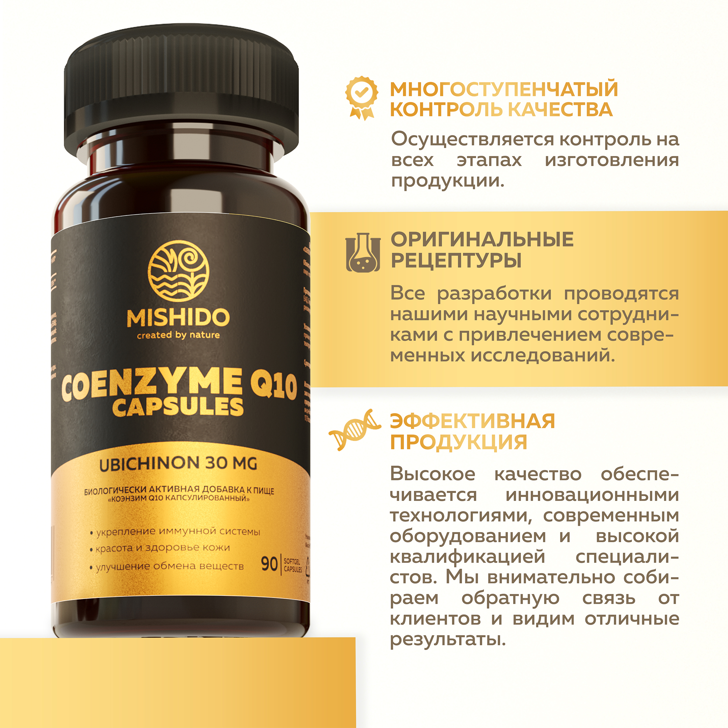 Добавка содержит коэнзим Q10 (убихинон) - катализатор жизненно важных процессов организма, ключевой элемент процесса генерации энергии, а также мощный антиоксидант, который способствует профилактике онкологии, нормализации артериального давления, метаболизма, укреплению сердечно-сосудистой, иммунной и нервной систем, улучшению репродуктивной функции, сохранению когнитивных (умственных) функций мозга, защите кожи от фото- и хроностарения. Коэнзим Q10 нейтрализует негативные последствия стресса, улучшает насыщение тканей кислородом, восстанавливает клеточные мембраны, регулирует работу иммунной системы, защищает легкие от агрессивных воздействий внешней среды, в связи с чем респираторные заболевания переносятся легче. Прием убихинона положительно влияет на обменные процессы, способствуя похудению, укрепляет мышечные волокна, помогает восстановить силы и энергию после занятий спортом, предупреждает болевой синдром в мышцах, повышает силу, выносливость, тонус, способствует лучшему усвоению витаминных добавок. Коэнзим Q10 помогает замедлить процессы старения, дарит коже упругость и эластичность, выравнивает тон лица, регулирует работу сальных желез, способствует более быстрой регенерации повреждений.