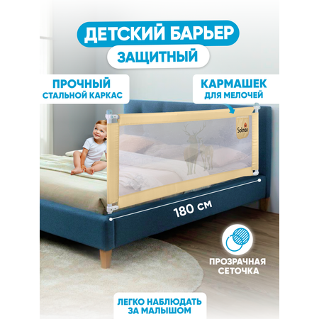 Защитный барьер для кровати Solmax от падений бортик безопасности 180 см бежевый