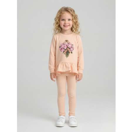 Комплект одежды для девочки KUZA состоит из туники и лосин. Комплект для девочки изготовлен из кулирки с эластаном (92% хлопок, 8% эластан).