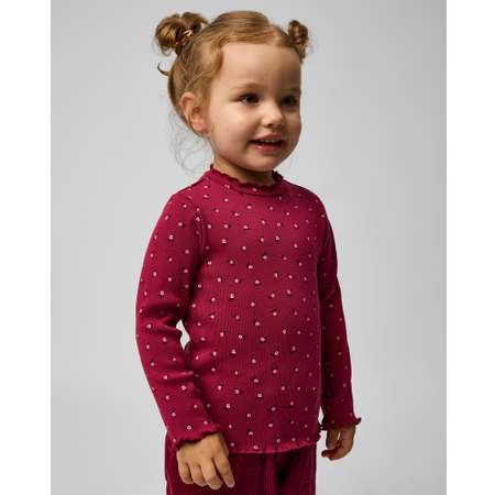 Бордовая водолазка для девочки Baby Go с цветочным принтом и волнистым кантом.
