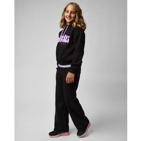 Чёрный спортивный костюм для девочки Futurino из широких брюк и худи с яркой надписью.