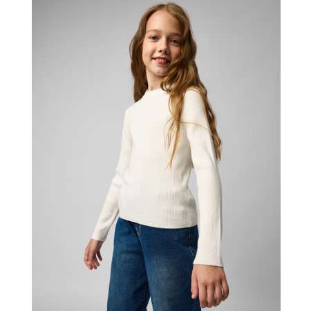 Однотонный джемпер для девочки Futurino белого цвета в рубчик.