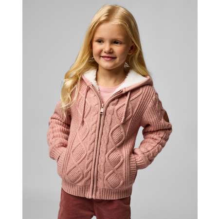 Утеплённая толстовка для девочки Futurino розового цвета с объёмным узором. Декорирована нашивкой.