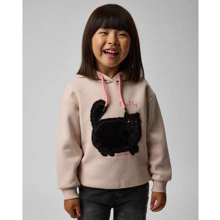 Нежно-розовое худи для девочки Futurino. Декорировано вышивкой в виде мягкого котика.