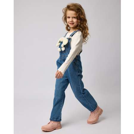 Джинсовый голубой полукомбинезон для девочки Futurino с оригинальным объёмным декором в виде зайчика в нагрудном кармане.