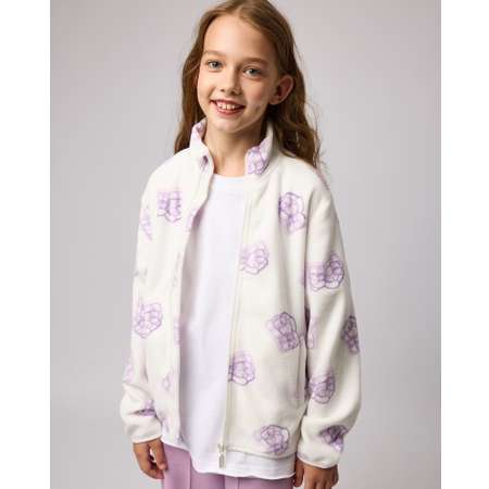 Флисовая толстовка для девочки Futurino белого цвета, декорированная принтом с мишками.