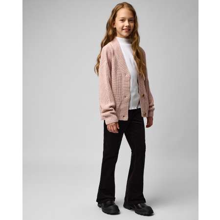 Вельветовые однотонные брюки-клёш для девочки Futurino чёрного цвета, с разрезами по низу.
