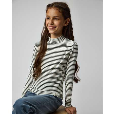 Водолазка в рубчик для девочки Futurino белого цвета в полоску, декорированная волнистым кантом.