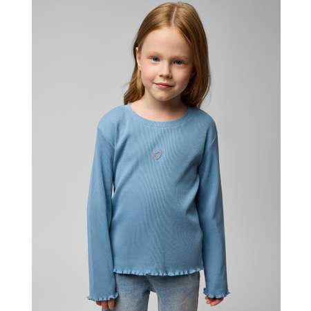 Голубой лонгслив для девочки Futurino с волнистым кантом и вышивкой-сердечком.