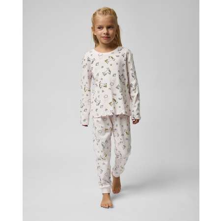 Светло-розовая пижама для девочки Day and Night из брюк и лонгслива, декорированных цветным принтом с единорогами.