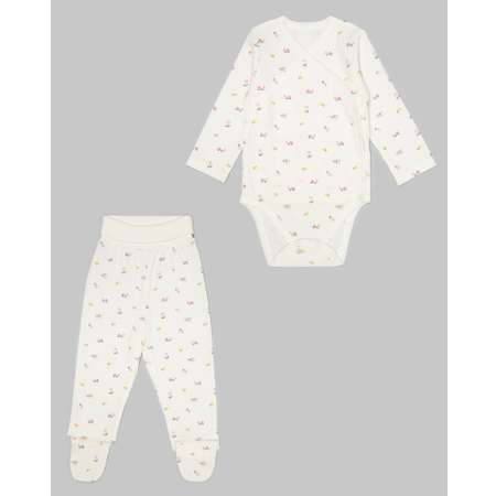 Комплект в рубчик для девочки "Моя Горошинка" из боди и ползунков с цветочным принтом. Изделия выполнены из 100% хлопка.