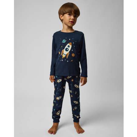 Тёмно-синяя пижама для мальчика Day and Night из брюк и лонгслива с принтом "Космос".