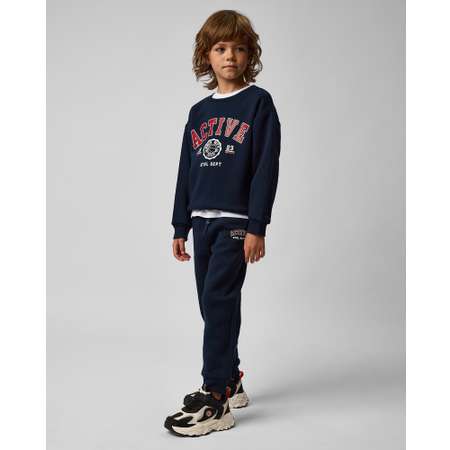 Брюки для мальчика Futurino тёмно-синего цвета с надписью.
