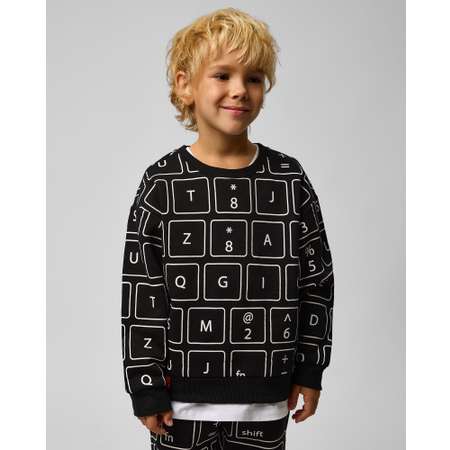 Чёрный свитшот для мальчика Futurino с контрастным принтом "клавиатура". Декорирован нашивкой.