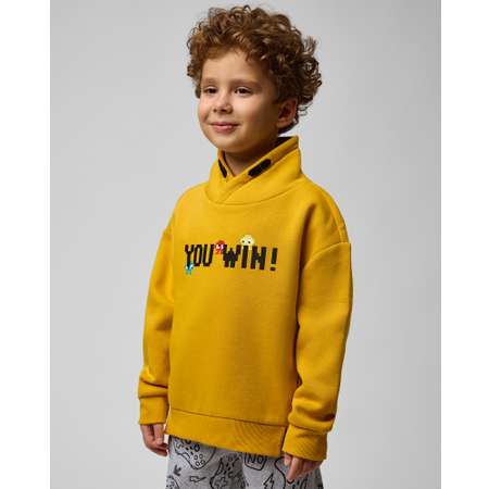Жёлтый свитшот для мальчика Futurino с надписью "You winn" и разрезами по низу.