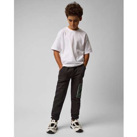 Тёмно-серые брюки для мальчика Futurino, дополненные текстильным накладным карманом со светоотражающими элементами.