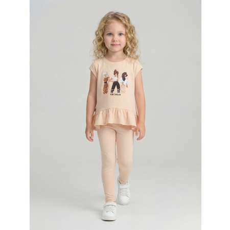 Комплект одежды для девочки KUZA состоит из туники и лосин. Комплект для девочки изготовлен из кулирки с эластаном (92% хлопок, 8% эластан).
