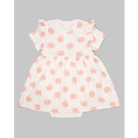 Платье-боди для девочки "Моя Горошинка", декорированное оборками и принтом с вишенками.