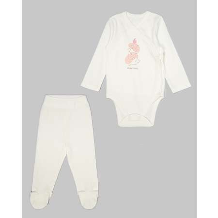 Комплект для девочки "Моя Горошинка" молочного цвета из двух предметов: боди с цветным принтом и ползунков в рубчик. Изделия выполнены из 100% хлопка.