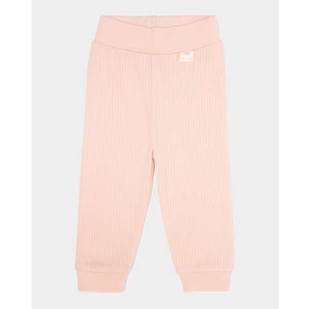 Однотонные брюки для девочки "Моя Горошинка" розового цвета в рубчик. Декорированы нашивкой.