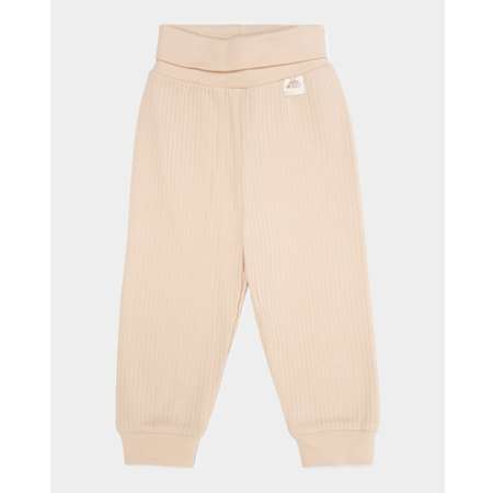 Однотонные брюки для мальчика "Моя Горошинка" бежевого цвета в рубчик. Декорированы нашивкой.