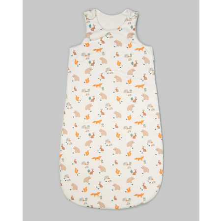 Уютный утеплённый спальный мешок "Моя Горошинка", декорированный цветным принтом со зверятами.