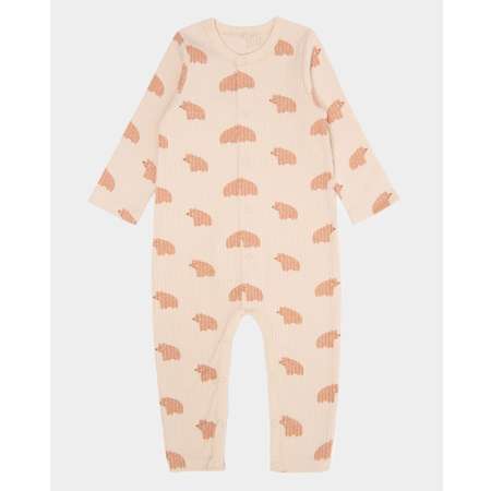 Бежевый комбинезон для мальчика "Моя Горошинка" с принтом "медвежата".