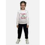 Мягкий и приятный к телу ребёнка, лонгслив для девочки. Рукава длинные, вырез горловины округлый под бейку. Джемпер декорирован рюшей и принтом.