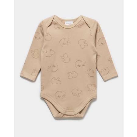 Бежевое боди для мальчика Baby Go, декорированное принтом с медвежатами.
