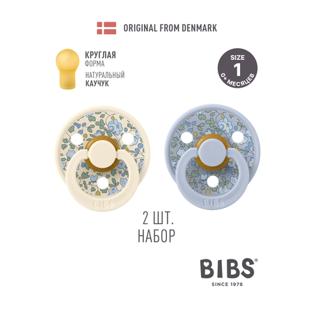 Новая коллекция BIBS & LIBERTY – это стильные детские товары, которые сочетают в себе типично британский, неподвластный времени элегантный дизайн LIBERTY и высокое качество и функциональность бренда BIBS. Сосок круглой естественной формы совместим с грудным вскармливанием. В размере 0+ пустышка подходит для недоношенных детей. Пустышки BIBS изготавливаются из экологичных, на 100% безопасных материалов. Сосок выполнен из натурального каучука (латекса), а защитная накладка (шилдик) — из полипропилена. Изогнутая форма накладки минимизирует контакт с чувствительной и нежной кожей вокруг рта ребенка. В каждой пустышке BIBS есть специальные вентиляционные клапаны, благодаря которым она является ортодонтически безопасной. В нашем интернет-магазине только оригинальная продукция BIBS и все пустышки имеют логотип на ручке/накладке. Латексная часть пустышки может быть как с логотипом, так и без него, зависит от партии товара. Не содержит БФА, ПВХ и фталаты. Соответствует европейскому стандарту: EN 1400+A1. В России прошли все необходимые тестирования, получены сертификаты безопасности 0+ для EAC. Внимание! Не оставляйте пустышки из натурального латекса под прямыми солнечными лучами. Не используйте УФ-стерилизаторы для пустышек. Не мойте пустышки в посудомоечной машине. Не замораживайте пустышки. Не кипятите пустышки – от длительного нагрева они могут испортиться. Цветопередача может немного отличаться от реальности.Характеристики