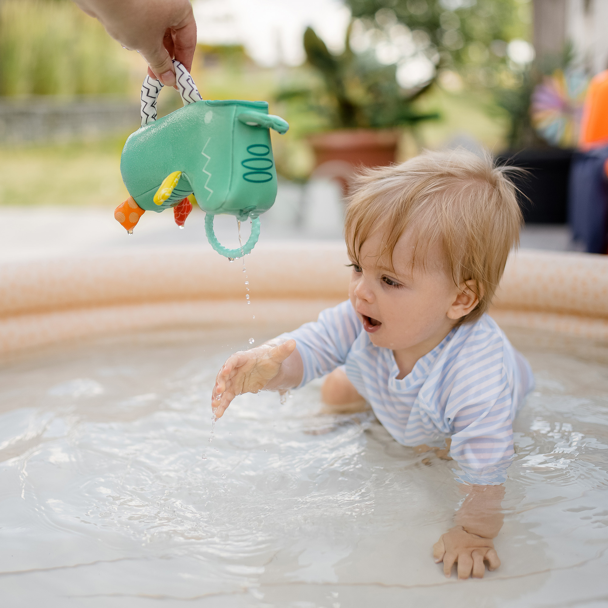 Игрушка для ванной «Лейка-крокодил» Купаться с удовольствием вместе с тканевой лейкой из коллекции Splash & Play, выполненной в форме очаровательного крокодила! С лейкой в виде крокодила купаться и играть в ванне станет намного интереснее. Погрузите лейку под воду, наполните ее, и можно начинать веселую игру. Удобная ручка лейки идеально подходит для маленьких детских ручек. Дети обожают набирать воду и выливать ее, а с такой милой лейкой это делать еще приятнее. Так как лейка выполнена из водонепроницаемого материала – наливать воду можно бесконечное количество раз. Яркий цвет и милые детали привлекают внимание, а специальное колечко стимулирует ребенка хватать и играть. Крокодил быстро станет любимой игрушкой малыша для купания. Идеально подходит в качестве подарка на рождение ребенка. Размер: 16 см Возраст: 0+ месяцев Материал верха: набивная ткань. Наполнитель: 100% полиэстер. Безопасность проверена независимыми испытательными институтами. Комплектация мягкая игрушка шт.Цены в интернет-магазине могут отличаться от розничных магазинов.